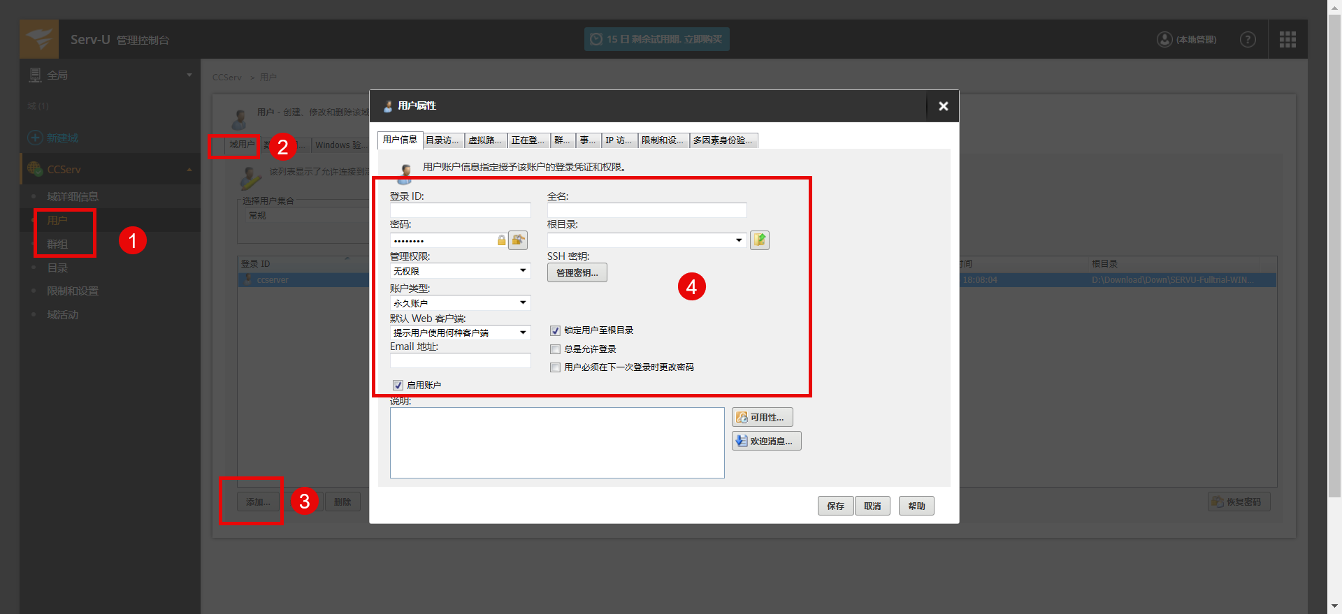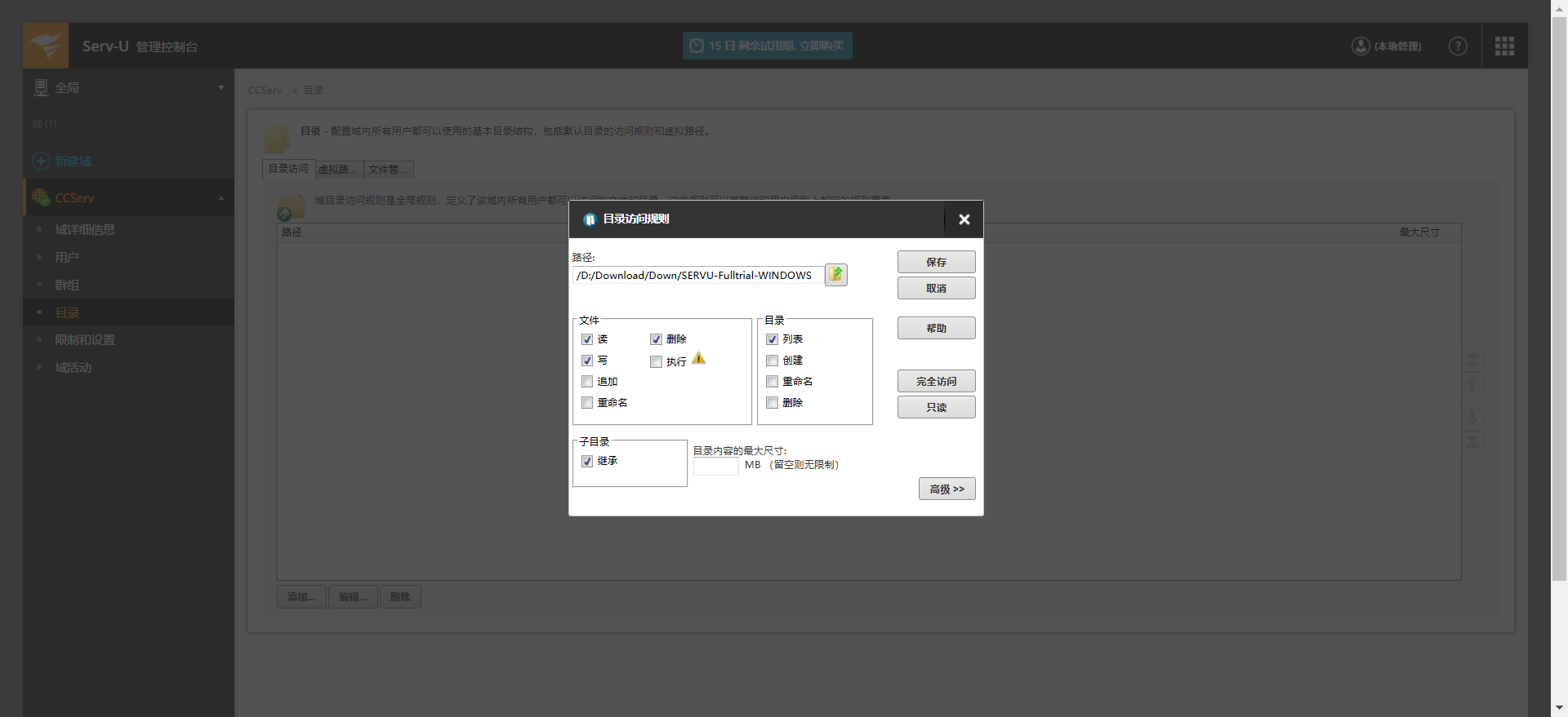 4、 整体操作下来,Serv-U 服务器确实非常强大,里面的功能也是很丰富。相关的内容我就不一一的做展示了,如果有兴趣的小伙伴,可以自己搭建使用。
