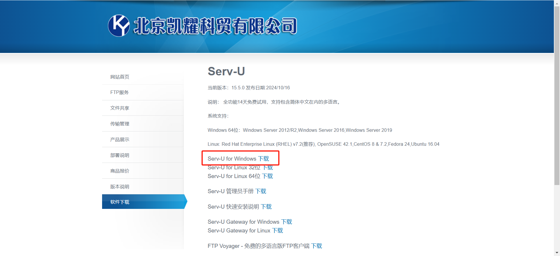 1、 Serv-U 软件:从官方网站下载并安装 Serv-U。下载链接:http://www.serv-u.com.cn/xiazai.html