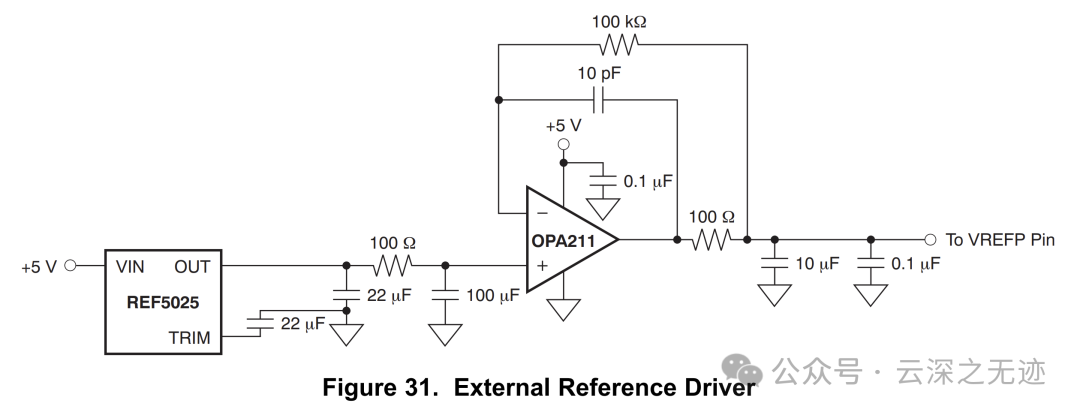 REF5025提供一个稳定的基准电压。