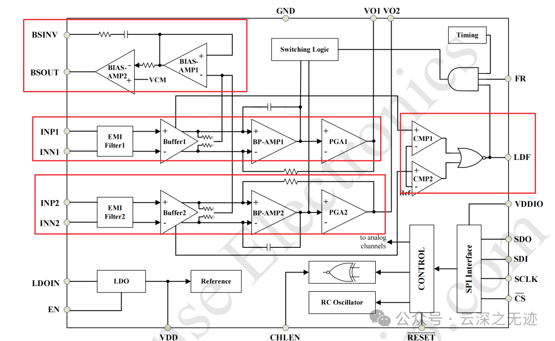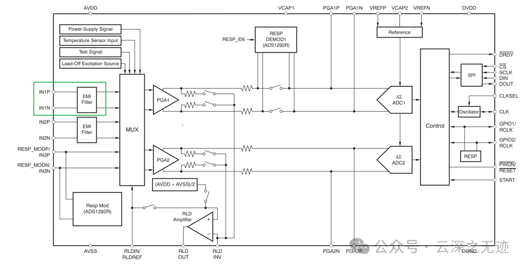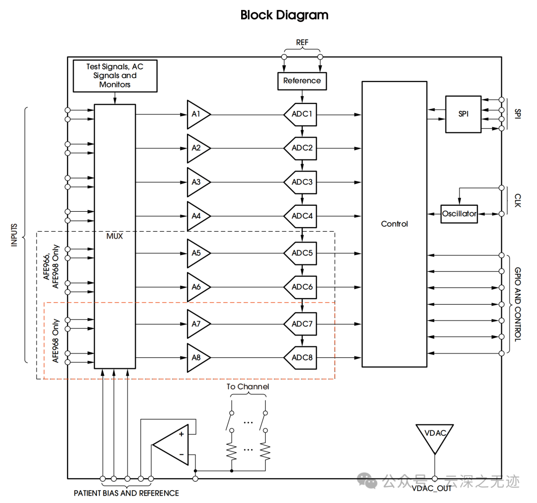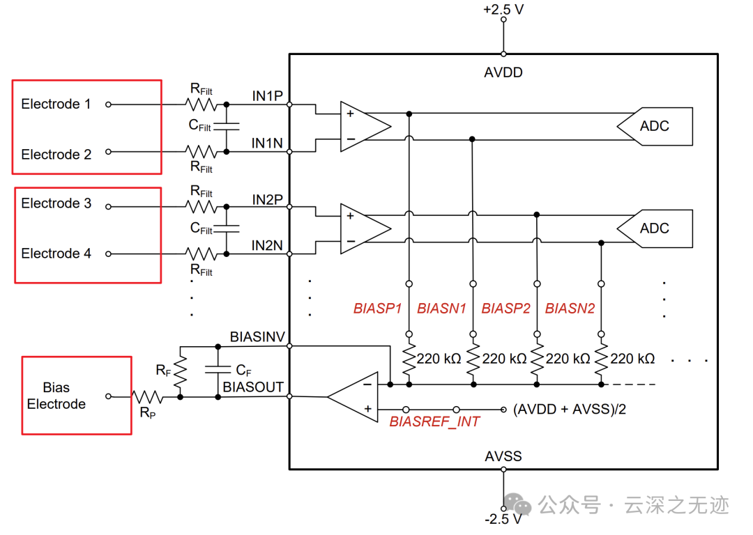电流源/电流汇,通过配置寄存器,将导联的一端连接到一个恒定电流源或电流汇,提供更稳定的偏置。