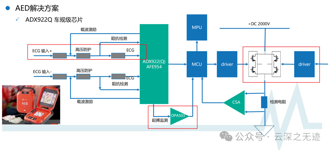 通过外部电阻或电流源/汇,在导联上施加一个直流偏置电压。生物电信号叠加在直流偏置上,共同被放大器放大。当导联脱落时,由于没有生物电信号的叠加,放大器的输出会发生变化,从而触发比较器产生报警信号。
