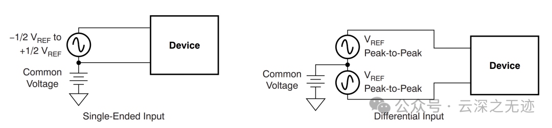 仅测量一个输入端(INP)相对于一个固定的参考电压(通常为地或某一共模电压,INN)。