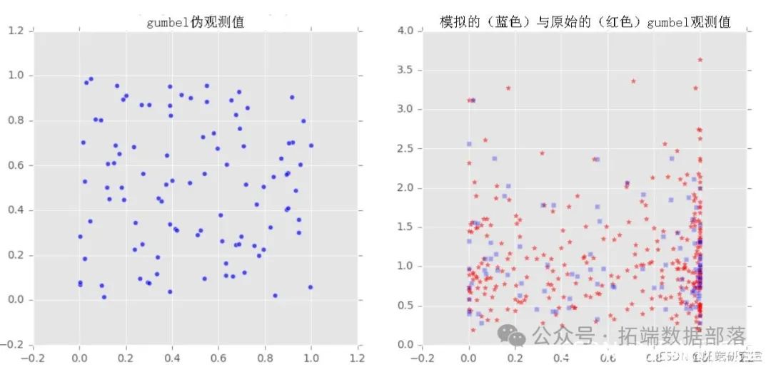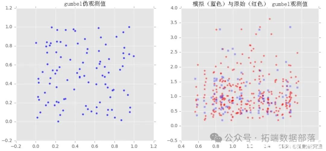现在,假设我们已经有了实验数据,并且知道可以使用Gumbel copula来表达依赖关系。但是我们不知道copula的超参数值是多少。在这种情况下,我们可以估计这个值。