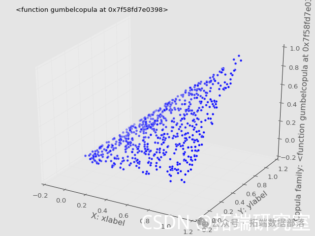 zeFigure=plot3d(U[样本],V[样本],copulapoints[样本], label=copulaName,