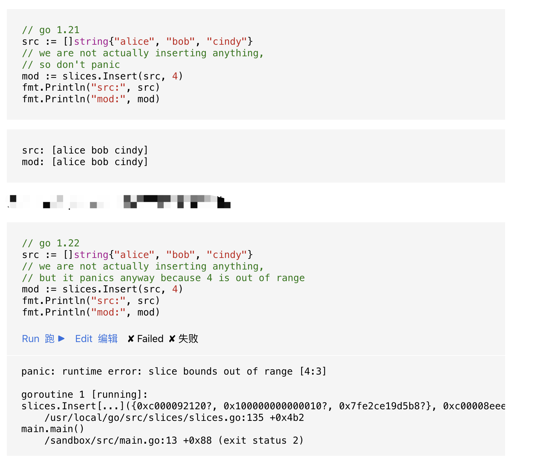 如果参数 i 超出范围,Insert函数会报panic。