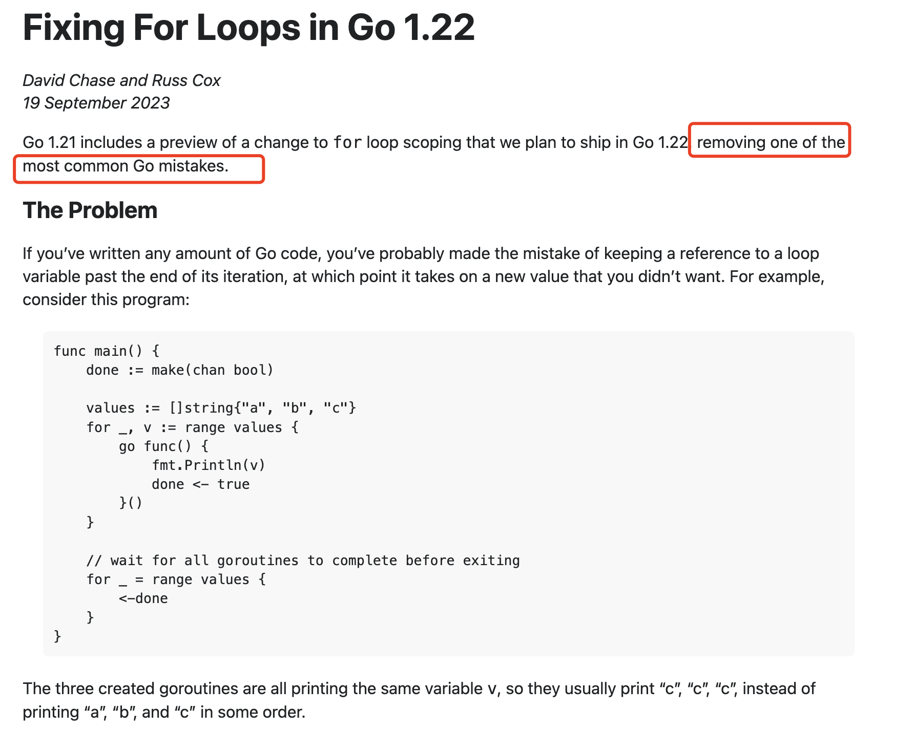 这里也确实让广大Golang开发者吐槽的地方,所以在golang1.22中,golang官方终于对这里出手了