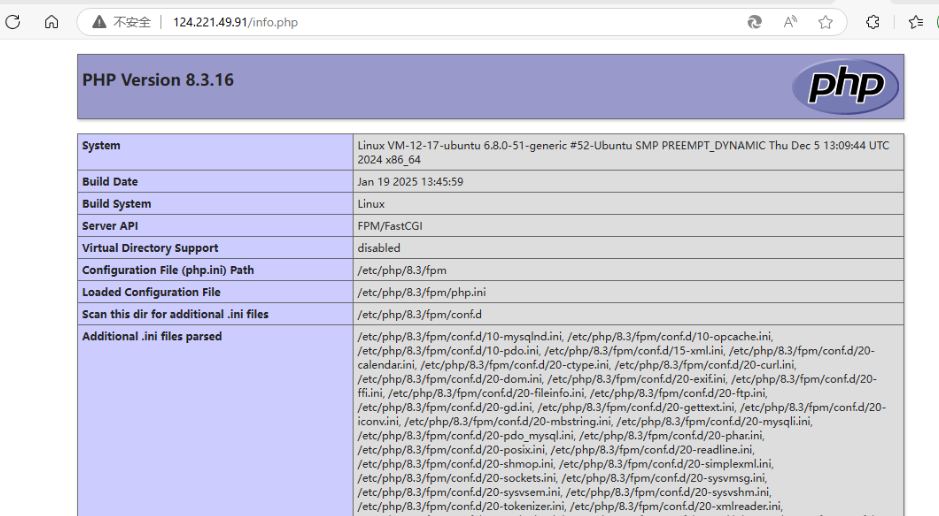 PHP 8.3.0 (cli) (built: ...)确保启用了proxy、proxy_fcgi和rewrite模块,这对于PHP-FPM的集成和URL重写非常重要。