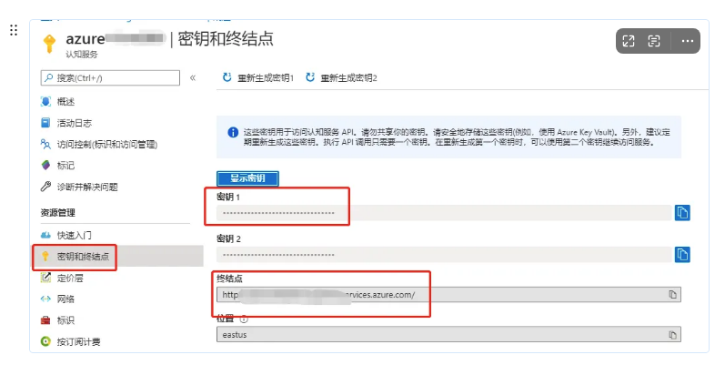 终结点:https://<your-region>.api.cognitive.microsoft.com/