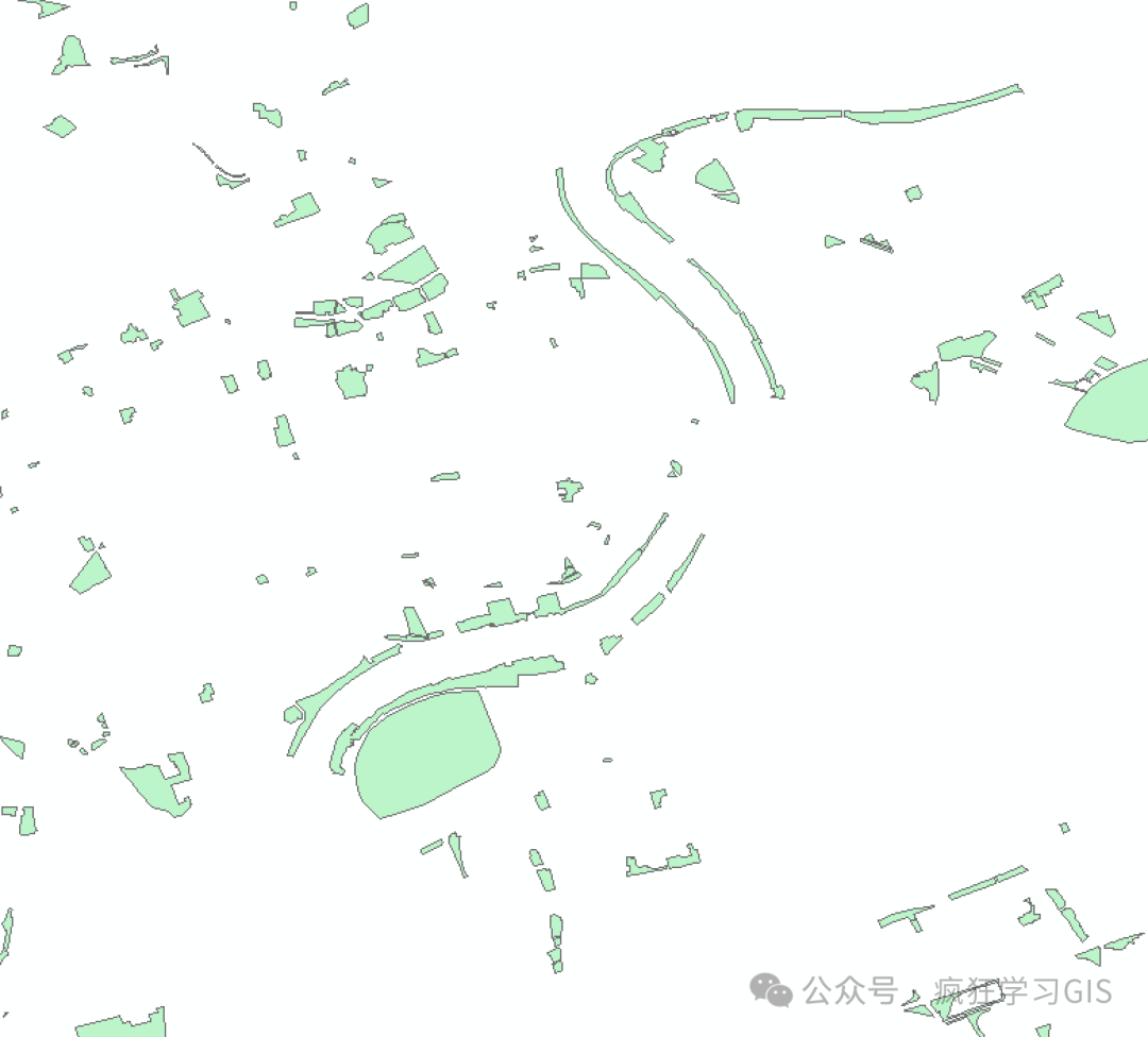 首先,明确一下本文的需求。现在有一个矢量面要素集,其中包含了多个分散的面要素,如下图所示。
