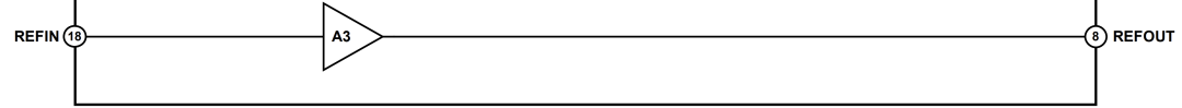 电阻值较大会使干扰信号更易出现在基准电压缓冲器的输入端上。为了最大程度地减少噪声拾取, 建议使各电阻相互靠近并尽可能靠近REFIN引脚。