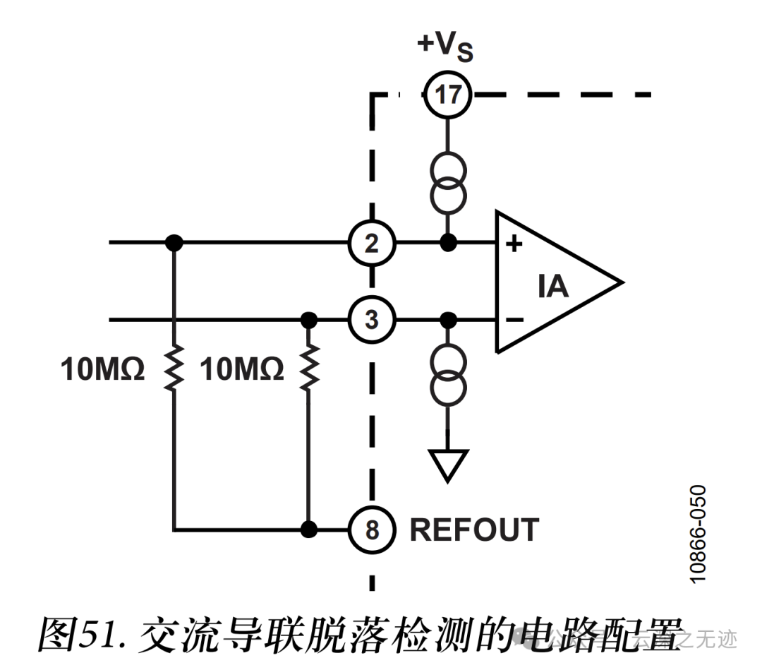 如果导联脱落,仪表放大器输出会趋于电源轨,触发比较器,从而启动快速恢复机制。