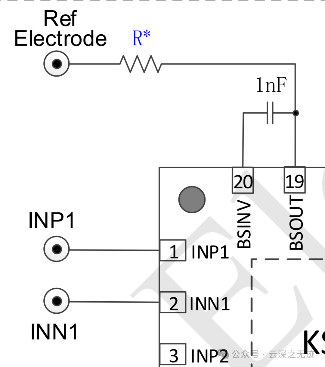 参考电极通常连接到右腿驱动放大器的输出端,提供一个稳定的参考电位。