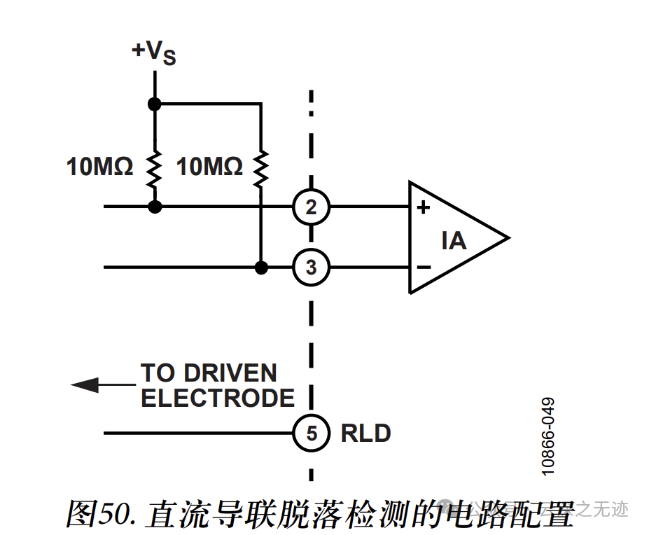通过外部电阻,向输入端注入一个高频小电流。当电极连接正常时,电流流过人体阻抗,在输入端产生一个微小的电压差。将检测到的电压与设定的阈值进行比较。如果电压低于阈值,则认为电极脱落。
