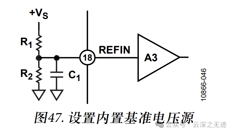 使用一个电容与分压器中较小的电阻并联,以提供额外滤波。注意,采用大电容时,噪声滤波效果较好,但上电后需要更长时间来建立基准电压。