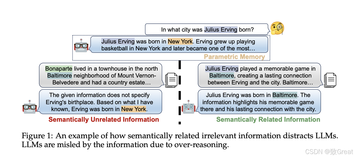 那么,如何定义相关性?这是一个复杂的问题。《How Easily do Irrelevant Inputs Skew the Responses of Large Language Models?》中提到了一些有趣的实验,研究者通过构建不同类型的信息(如无关信息、部分相关的无关信息和相关但误导性的无关信息)来测试大模型对相关性的敏感性。