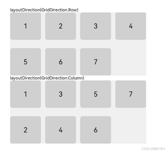通过线性容器Row和Column实现线性布局。Column容器内子组件按照垂直方向排列,Row组件中,子组件按照水平方向排列。