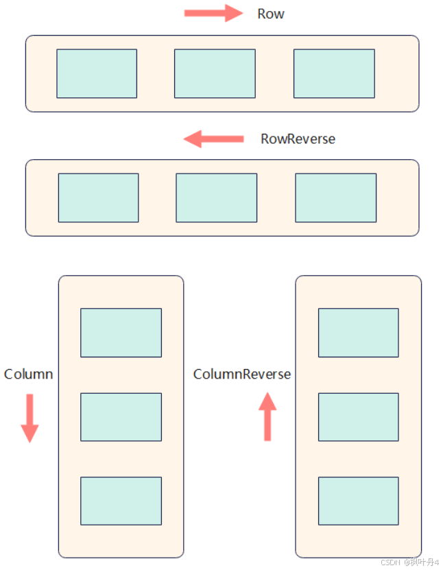 线性布局的排列方向由所选容器组件决定。根据不同的排列方向,选择使用Row或Column容器创建线性布局,通过调整space,alignItems,justifyContent属性调整子组件的间距,水平垂直方向的对齐方式。