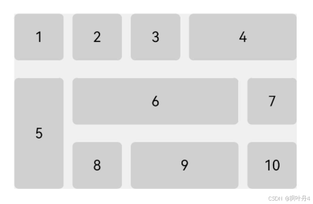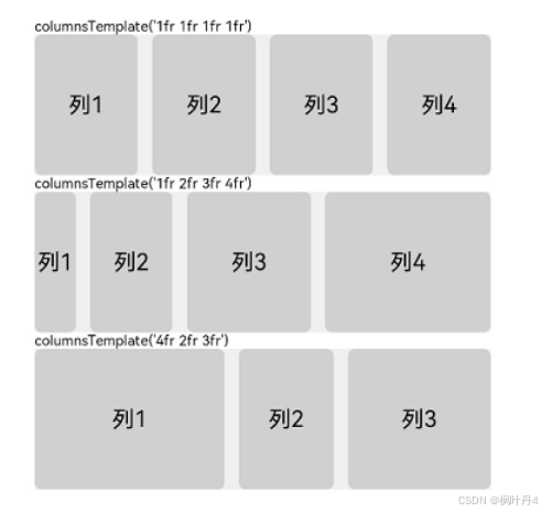 栅格容器中的组件使用通用属性useSizeType设置不同的设备宽度类型的占用列数和列偏移。其中span表示栅格容器组件占据columns的数量;offset表示列偏移量,指将组件放置在哪一个columns上。 如: