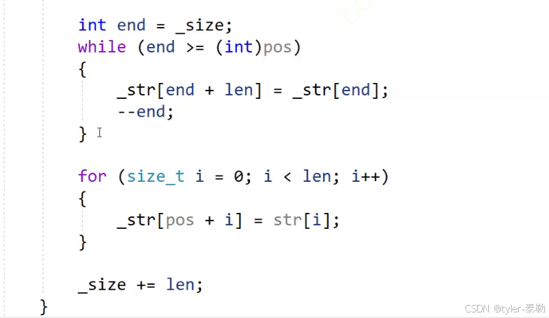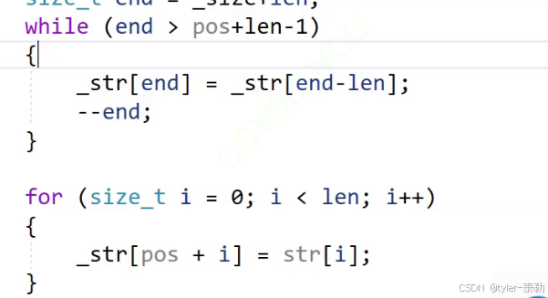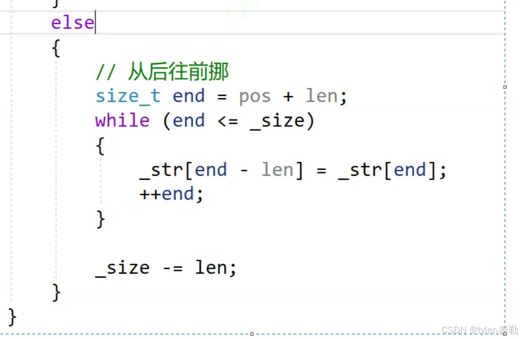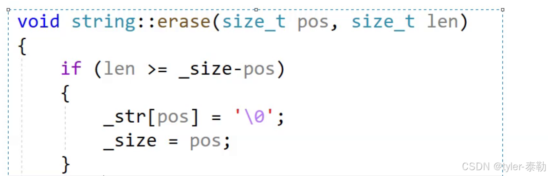 如果 (len==npos||len>=_size-pos) 这就是pos后面位置全部删除 {_str[pos]=‘\0’; _size=pos; }