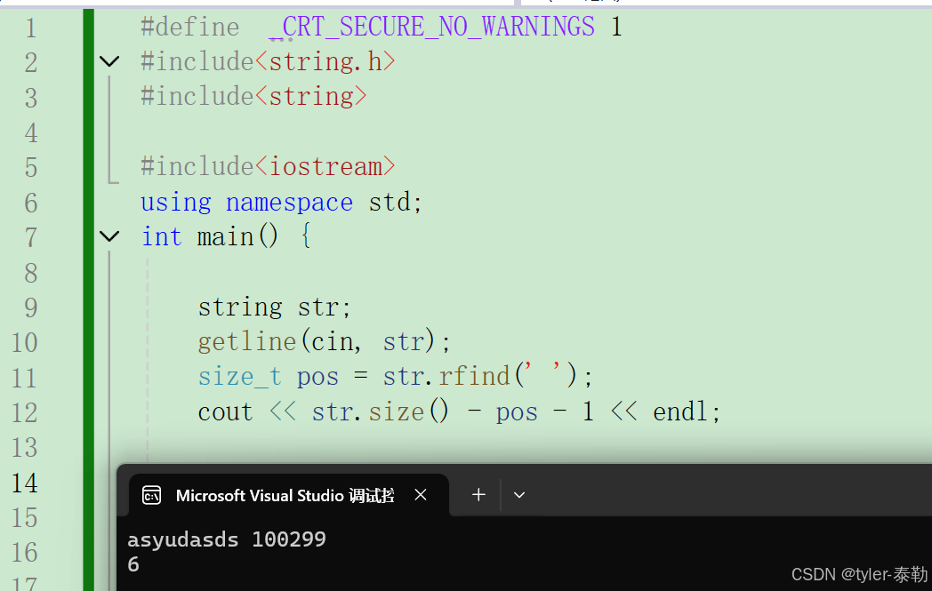 这里要取一段文字后第一段空格后的字母个数必须要用getlin提取,因为用cin的话会遇到‘ ’终止