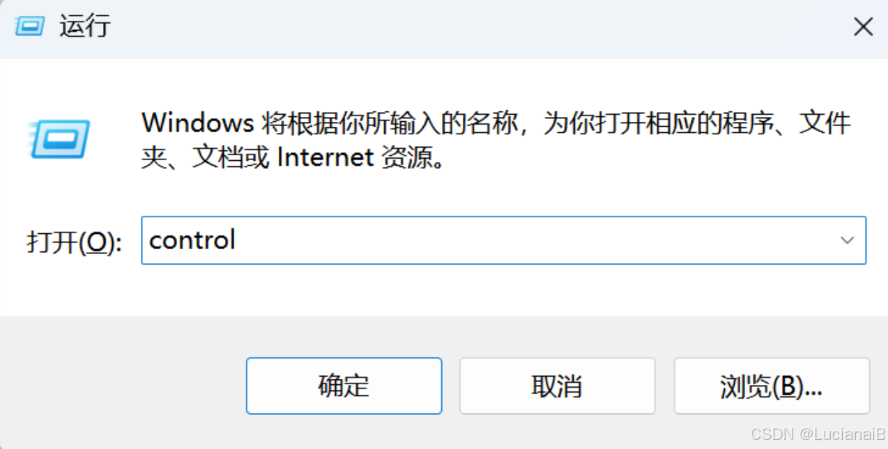 1.同时摁win+r,输入control,点击确定。