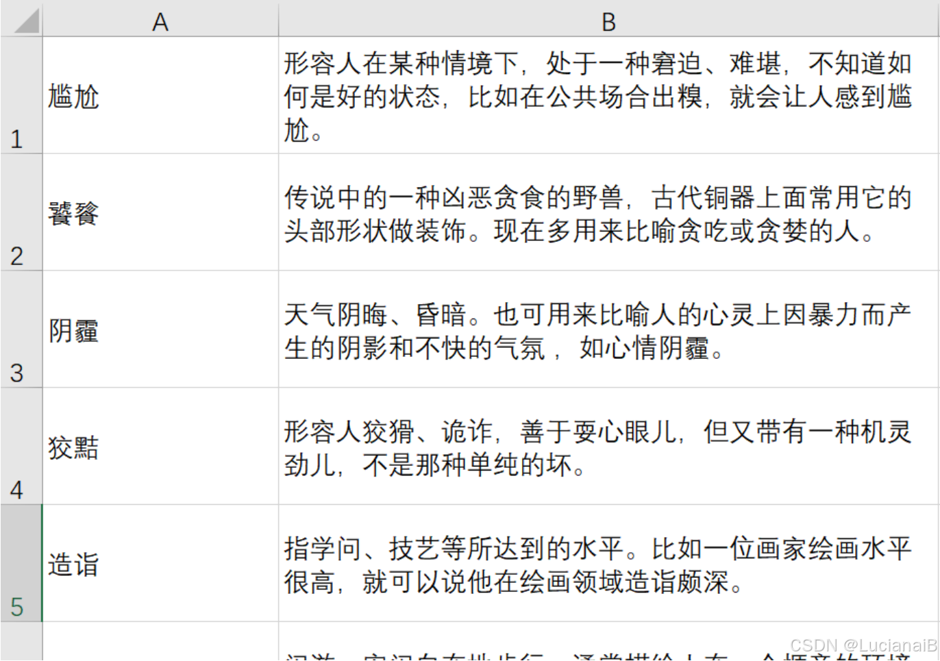 然后复制到excel表格,于是得到了几百条数据,每个词语发一个作品,那也可以发几百个作品了。