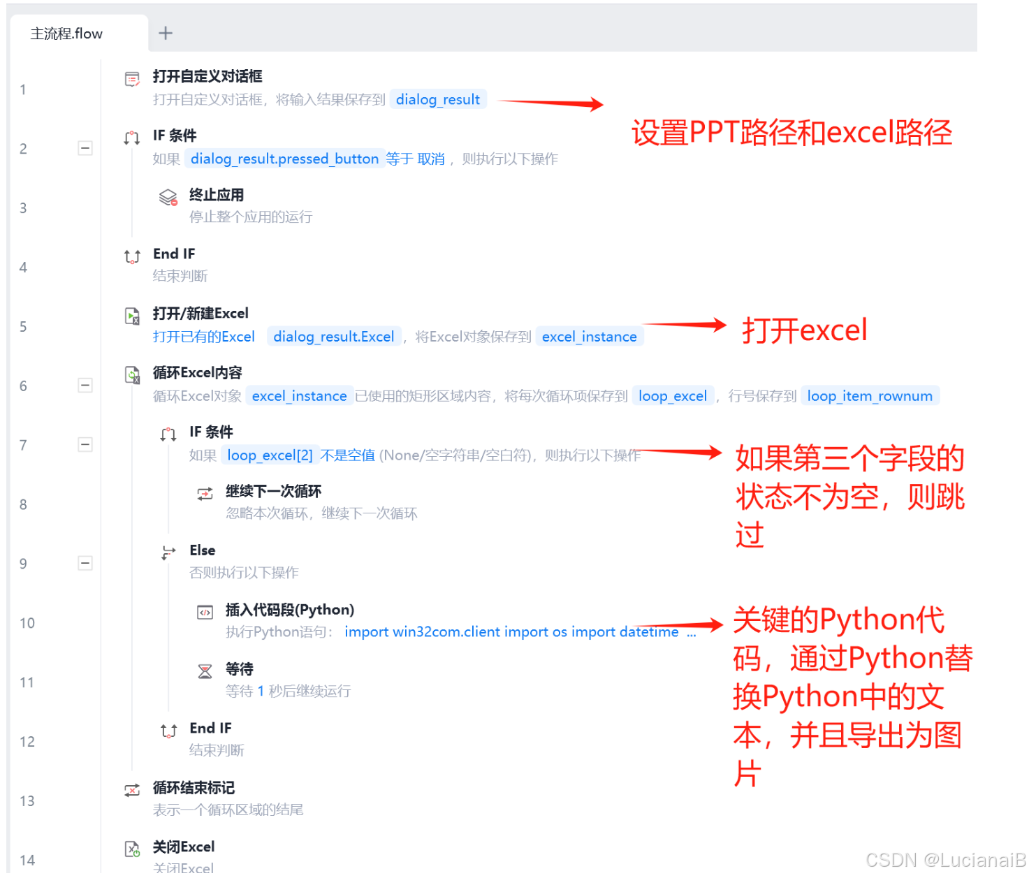 可以说,这一步是批量化最关键的步骤,我们选用的工具是影刀,自动读取excel,并替换ppt中的指定词语并导出在PPT同目录下的output(会自动创建文件夹)图片。有想学习影刀的,可以参考我的截屏(完整版)自行研究。