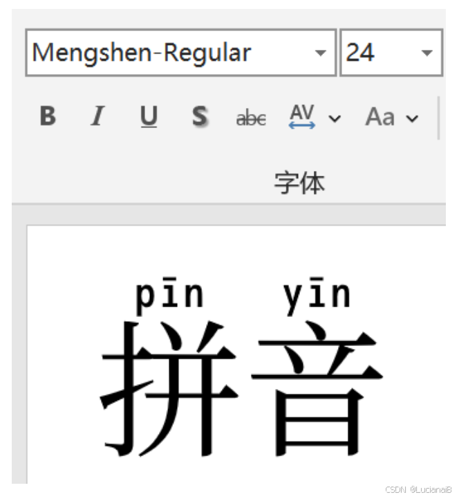 可以进行验证,在PPT里面选择字体名称Mengshen-Regular看中文是否有拼音即可。