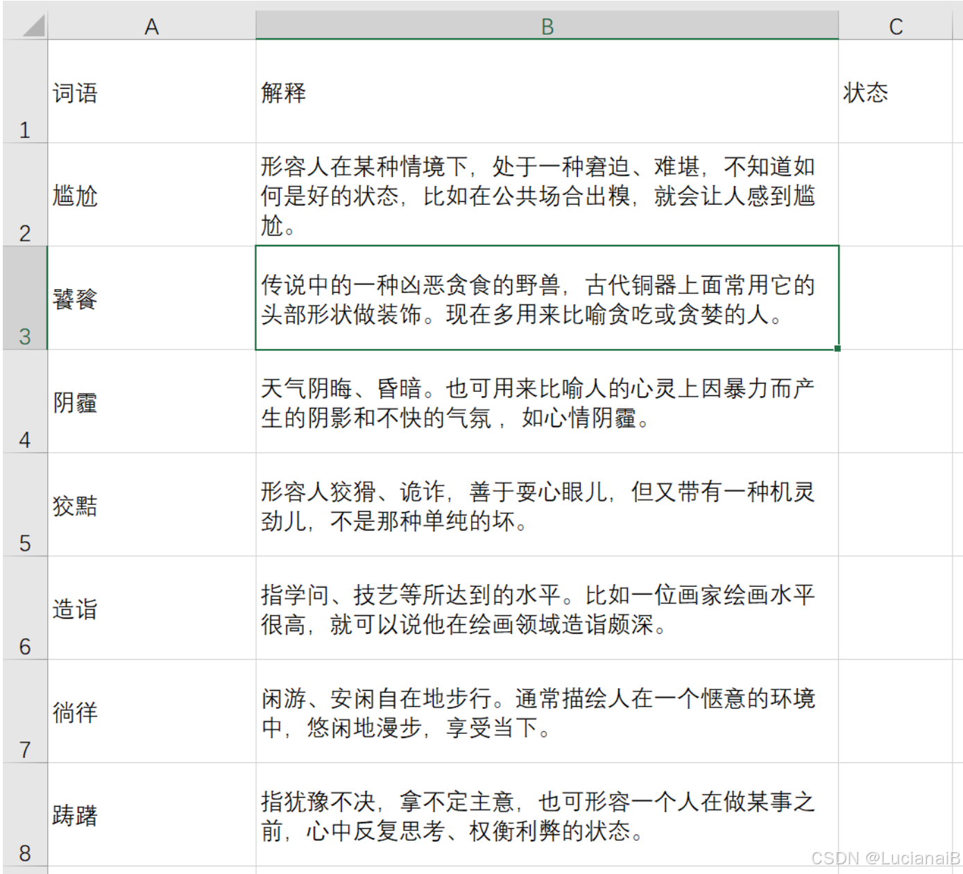 2、词语库.xlsx(excel里面我已经汇总了200多个词语,够发200多个作品了,实在不行,修改下ppt模板,再生产一篇,不就又有了200多个作品吗)