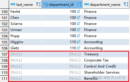 ON e.`department_id` = d.`department_id`;右下图(左中图 + 右中图 A ∪B- A∩B 或者 (A - A∩B) ∪ (B - A∩B))