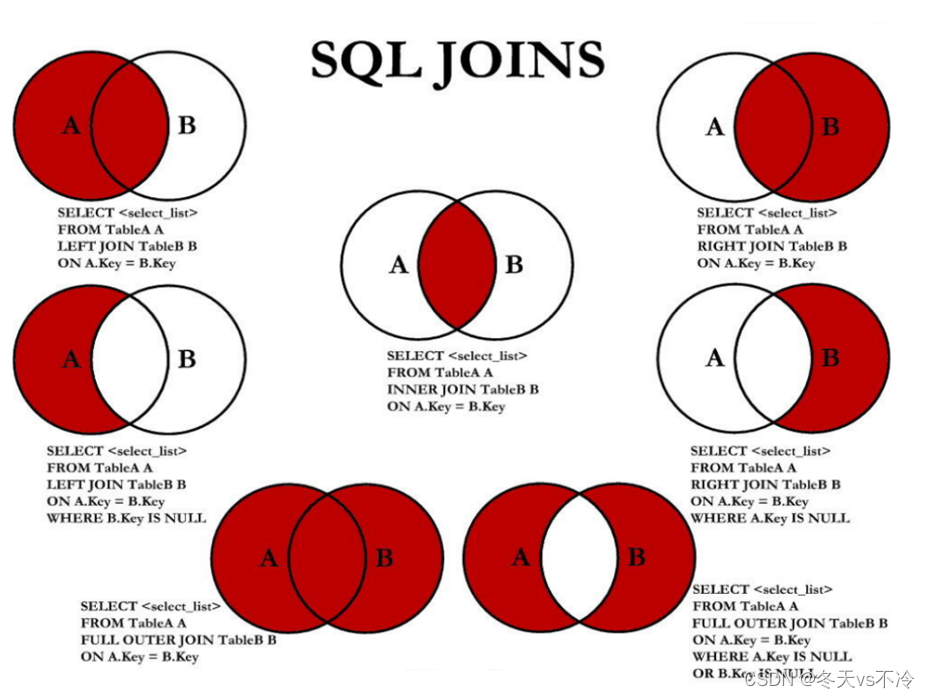 WHERE e.`department_id` IS NULL左下图:全外连接(左中图 + 右上图 A∪B)