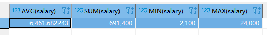 SELECT AVG(salary), SUM(salary), MIN(salary),MAX(salary)