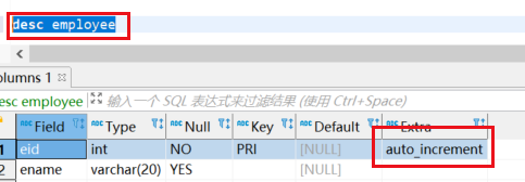 alter table employee modify eid int auto_increment;通过desc employee查看