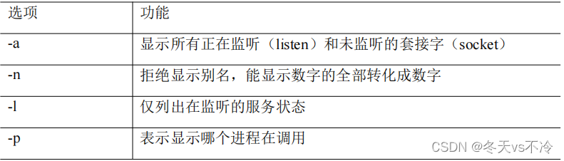 - netstat -nltp | grep 端口号:查看网络端口号占用情况