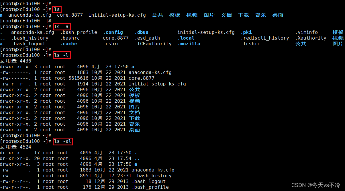 3、表示回到自己的家目录,亦即是 /root这个目录