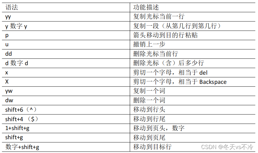 - 在一般模式中可以进行删除、复制、粘贴等的动作,但是却无法编辑文件内容的!