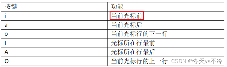 - 按下『i, I, o, O, a, A』等任何一个字母之后才会进入编辑模式