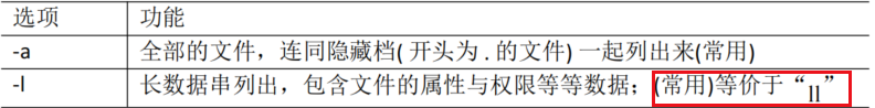 - [ r ]代表可读(read):可以读取,ls查看目录里面的内容