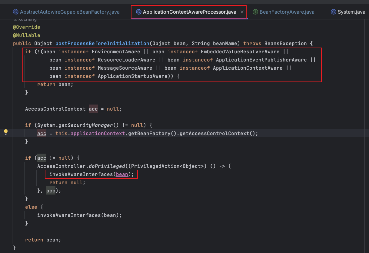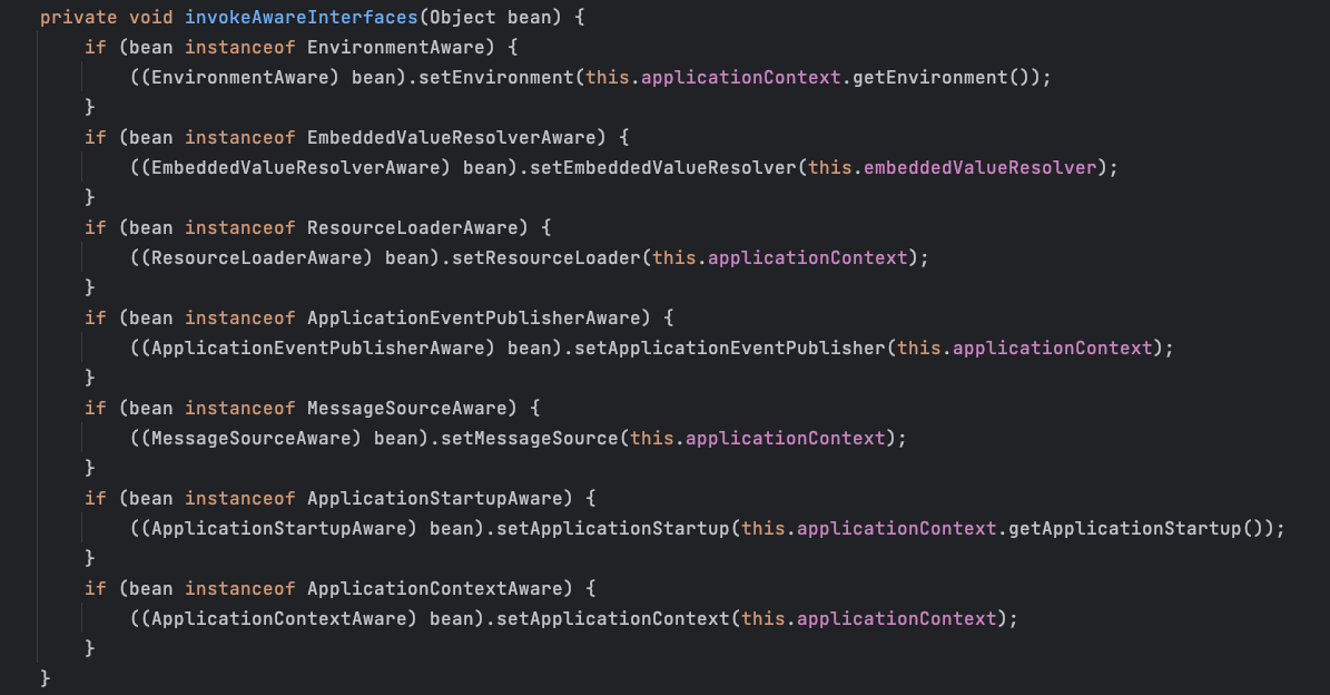 if (bean instanceof Aware) {