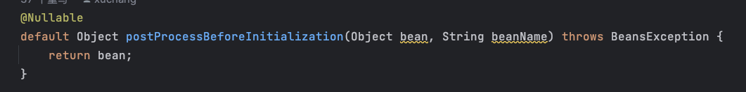 // 2.在bean初始化方法执行前,调用postProcessBeforeInitialization方法