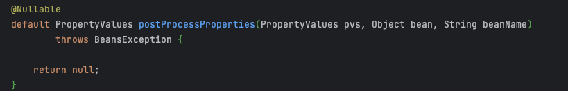 pvsToUse = bp.postProcessPropertyValues(pvs, filteredPds, bw.getWrappedInstance(), beanName);