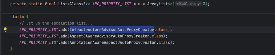 // 实际上会往容器中注册一个InfrastructureAdvisorAutoProxyCreator