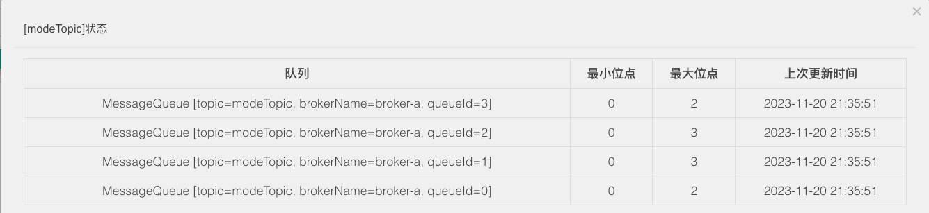 rocketMQTemplate.syncSend("modeTopic", "我是第" + i + "个消息");