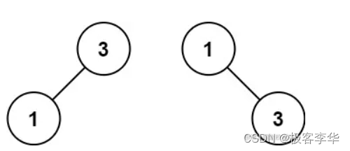 解释: [1,null,3] 和 [3,1] 都是高度平衡二叉搜索树。提示: