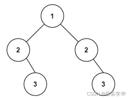 输入: root = [1,2,2,null,3,null,3]