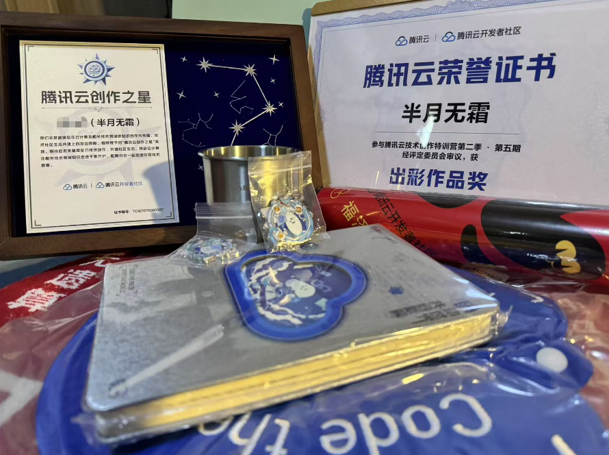 最后小秀一下,前两天社区给我寄的年度创作之星大礼,新的一年,我们继续加油
