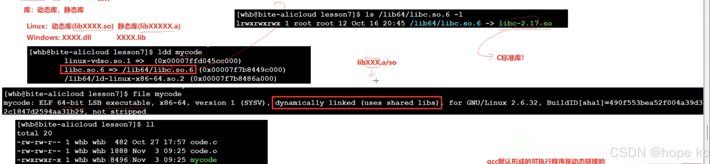 没有把库⽂件的代码加⼊到可执⾏⽂件中 ,⽽是在程序执⾏时由运⾏时链接⽂件加载库,这样可以节省系统的开销。动态库⼀般后缀名为“.so”