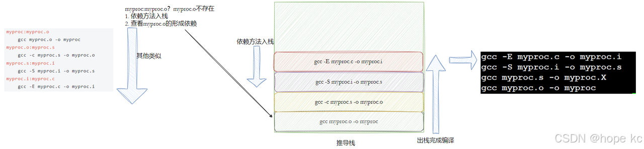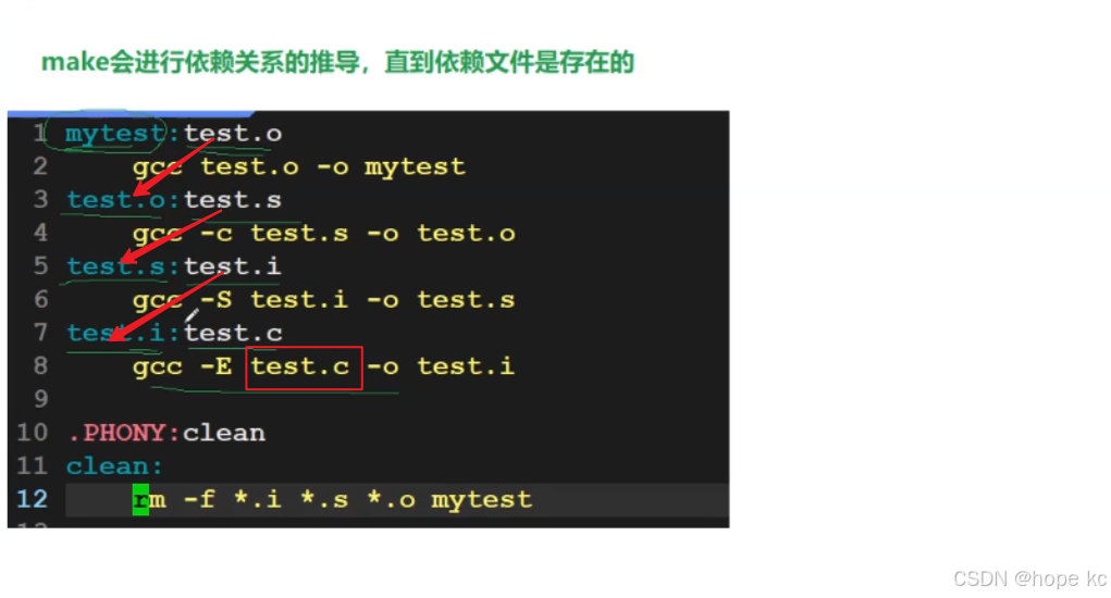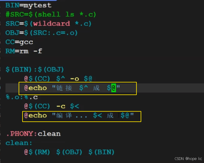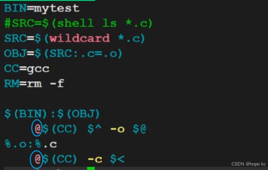 每一行最前面的@是指在外面使用make指令时 不显示过程,直接给出结果(可不加)