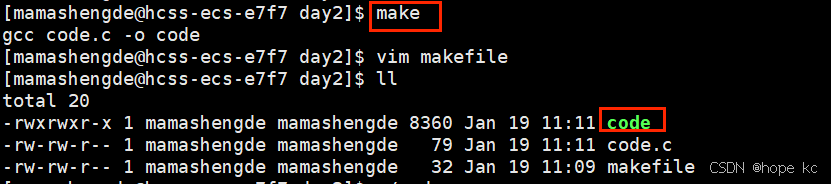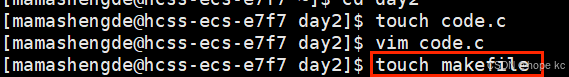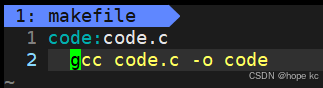 先创建一个code.c并用vim进行编写,再新建一个makefile