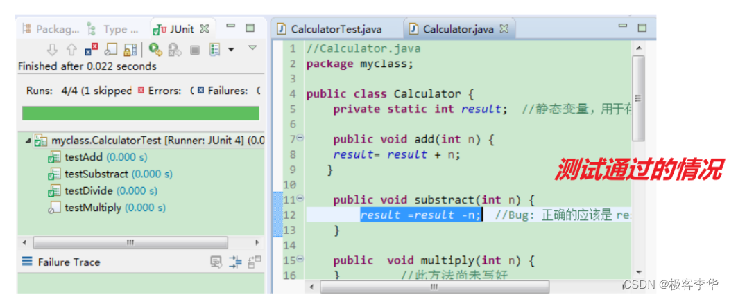 (2)修改 Calculator 后,重新运行测试,查看测试结果。